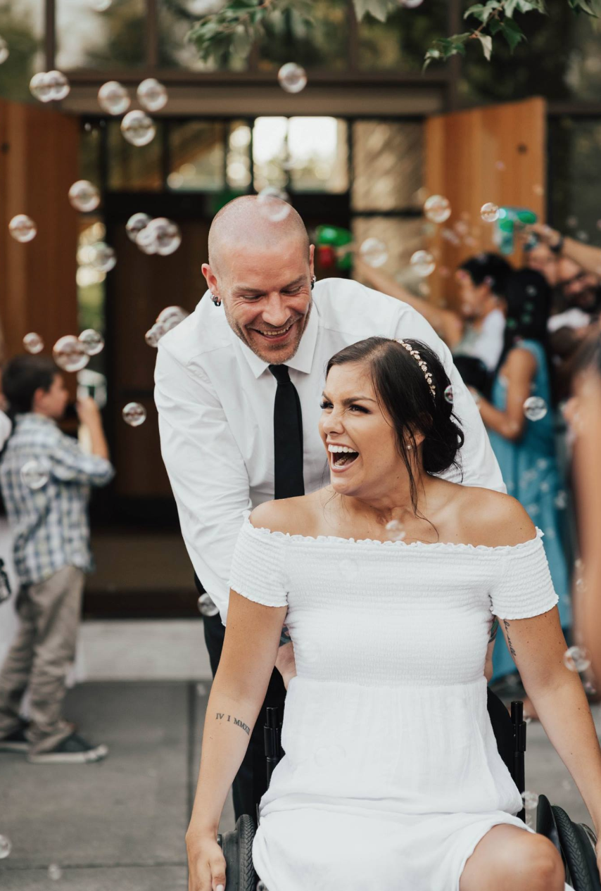 “It’s so funny because I just love my life. Everything I would have wanted prior, I have now. I graduated college, have a job, I’m married, we own a house, we have a dog, that’s a handful and talk about kids is in the future. My life is exactly what I would have imagined before my accident except for the fact that I’m just sitting down.”-Emma
